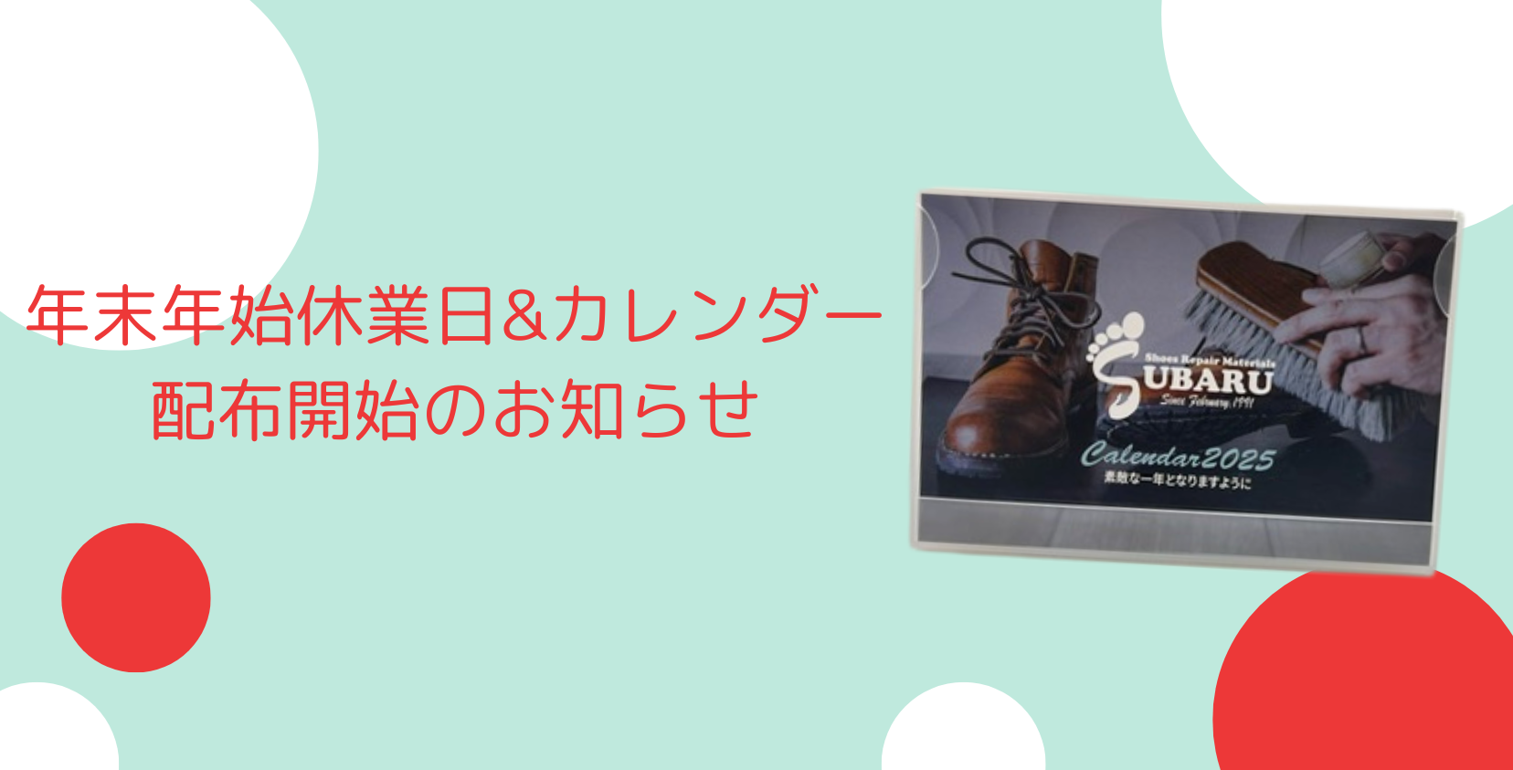 年末年始休業日&カレンダー配布開始のお知らせSUBARU Co.,Ltd。