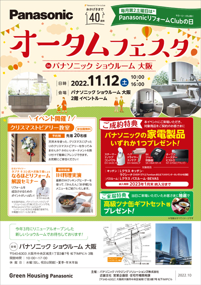 このイベントは終了しました Panasonicショウルーム大阪でオータムフェスタを開催します! - 株式会社 紀陽。