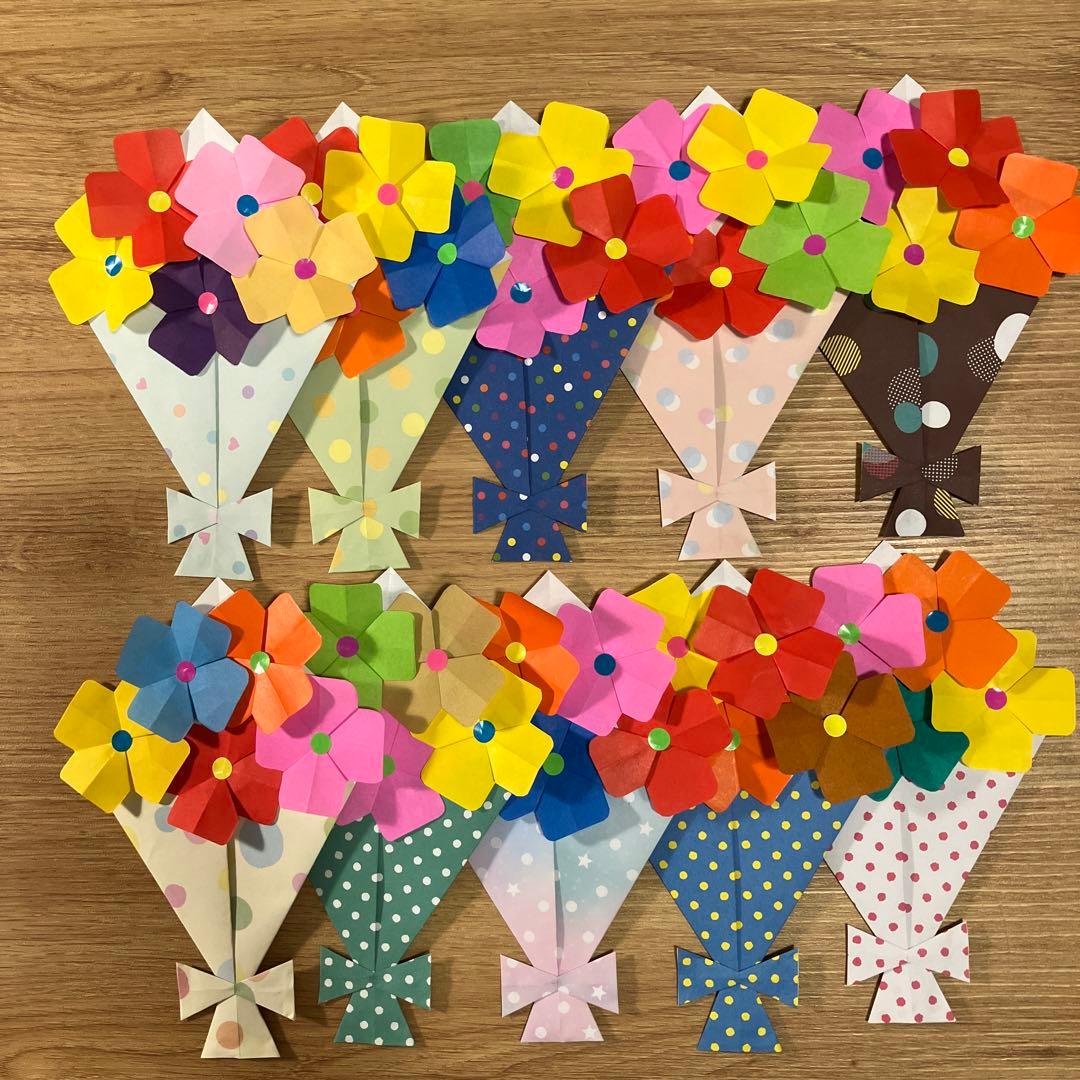 折り紙花花束ブーケハロウィンパーティー飾りプレゼント匿名配送。