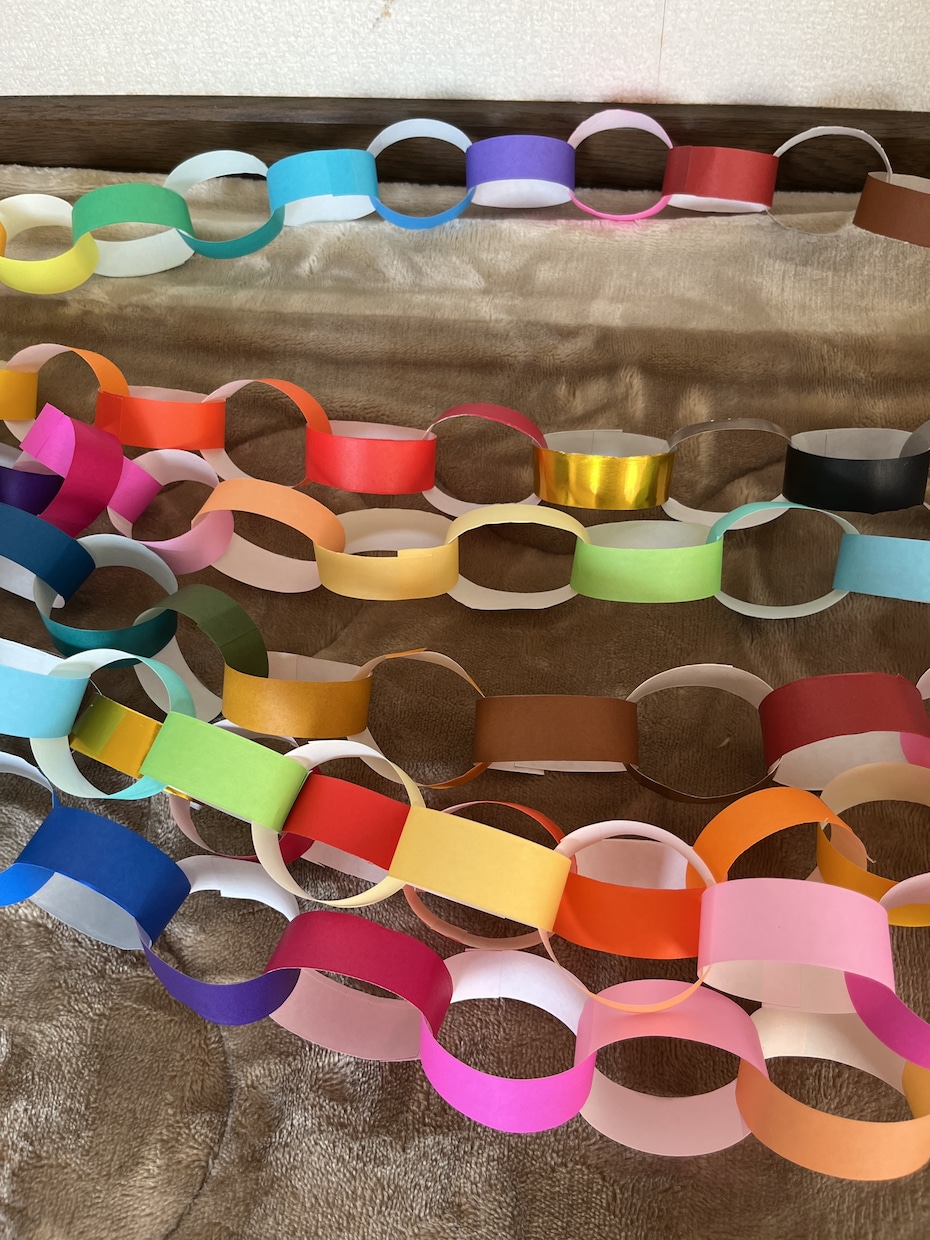 折り紙で簡単にできる!ガーランドの作り方と、色の選び方 お誕生日パーティの飾り付け - 心を楽に、シンプルライフ。