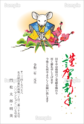 子年の置物の年賀状 挨拶文あり :イラスト無料。