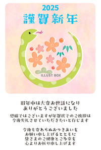 2025年巳年の年賀状テンプレート3 年賀状じまいのご挨拶文 巳年のへび:イラスト無料。