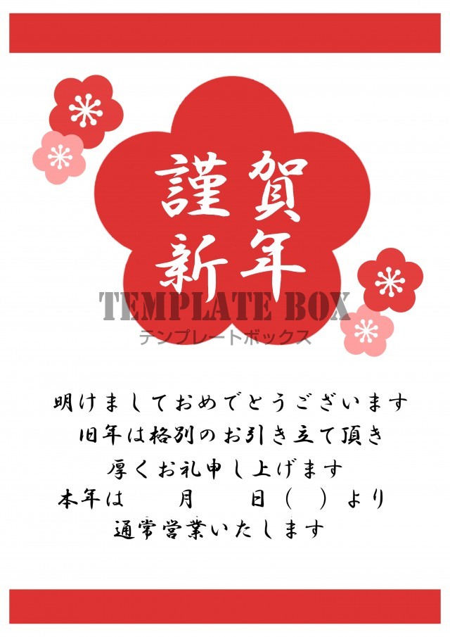 梅マークの新年のご挨拶張り紙テンプレート素材・謹賀新年・年始・正月無料テンプレートTemplateBox。
