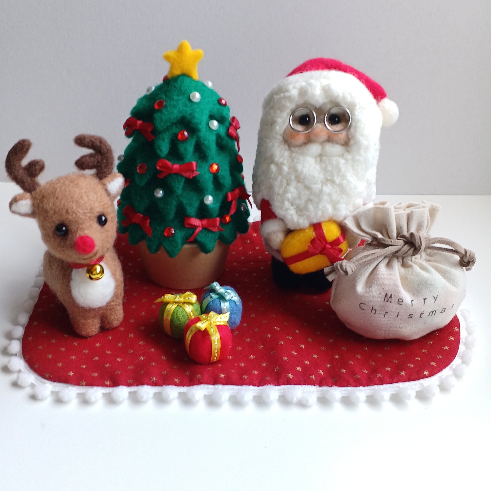 羊毛フェルト ハンドメイド クリスマス サンタクロースとトナカイ トナカイ 羊毛フェルト クリスマス ハンドメイド Xmas サンタクロース。