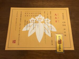 有名なパワースポット寒川神社のおみくじで「大大吉」。