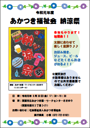 令和元年度あかつき福祉会「納涼祭」ポスターが完成しました。社会福祉法人あかつき福祉会。