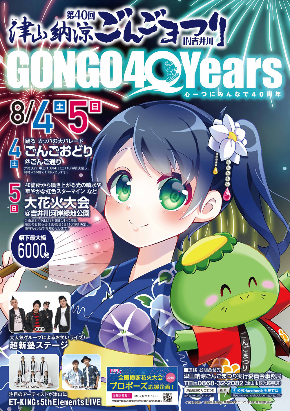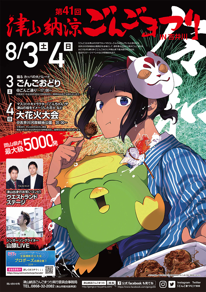ごんごまつりポスター津山納涼ごんごまつりIN吉井川 実行委員会 公式。