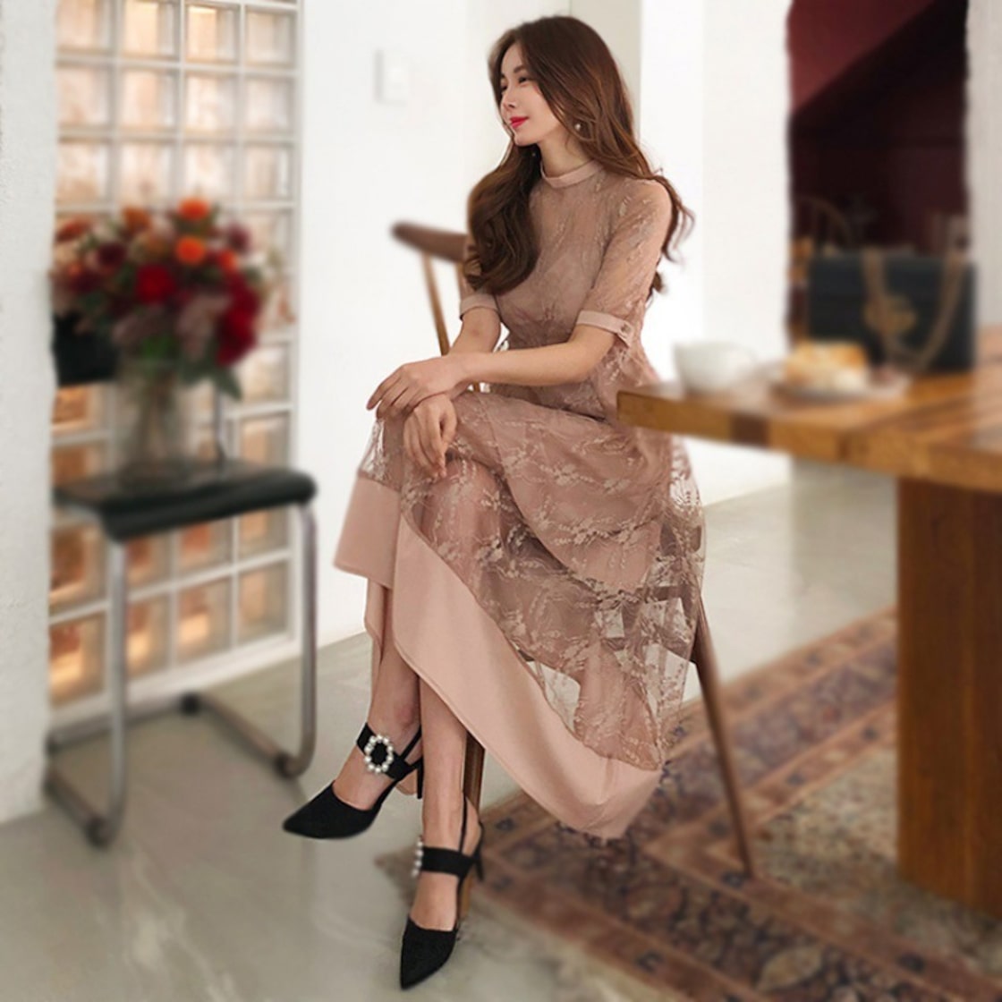 ワンピース 結婚式 夏 フレンチスリーブ パーティー 二次会 お呼ばれ パーティードレス タイト きれいめ トレンド感たっぷり☆シアードレス 韓国パーティードレス お呼ばれワンピース 春夏マキシワンピース リゾートワンピース シアー シフォン 韓国 ファッション。