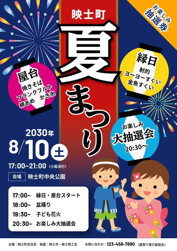 イベント集客のための夏祭りチラシデザイン作成集客チラシラボ。