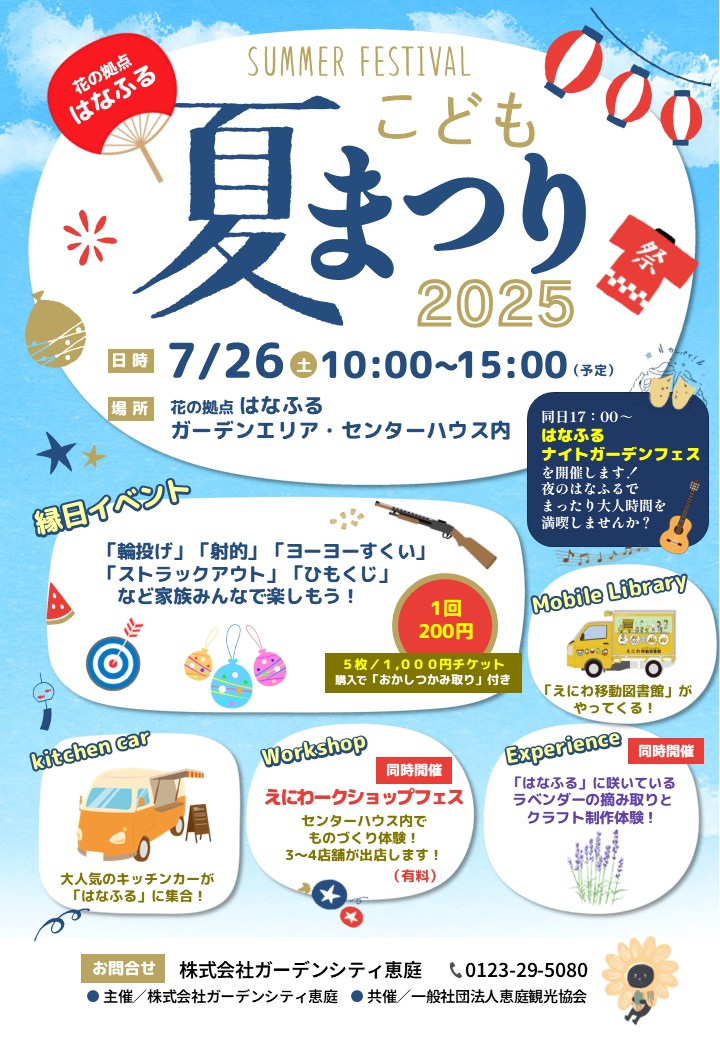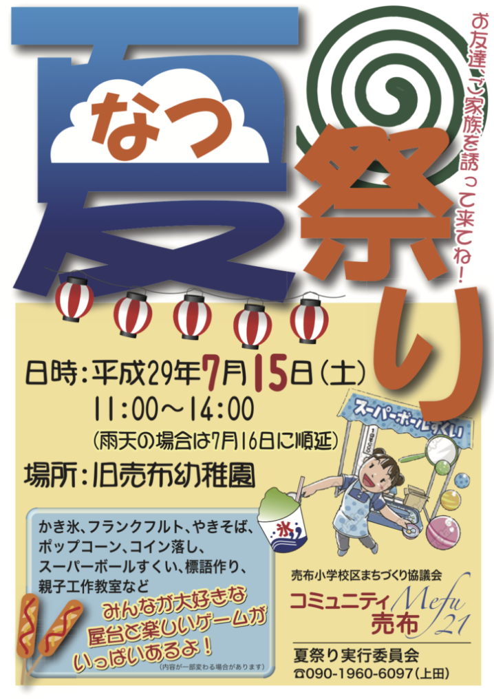 こども夏祭りチラシ花の拠点 はなふる ハナフル。
