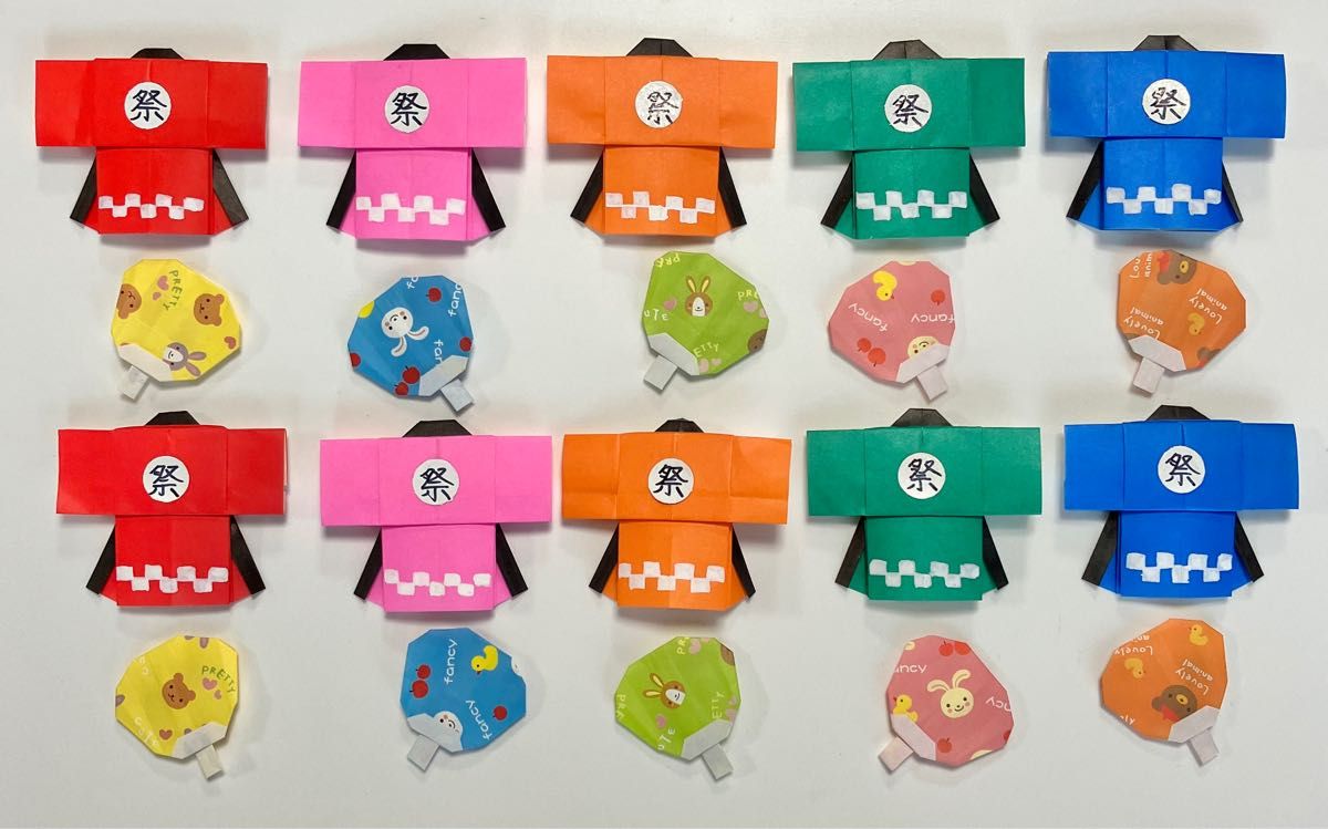 夏の折り紙夏祭りはっぴとうちわ。