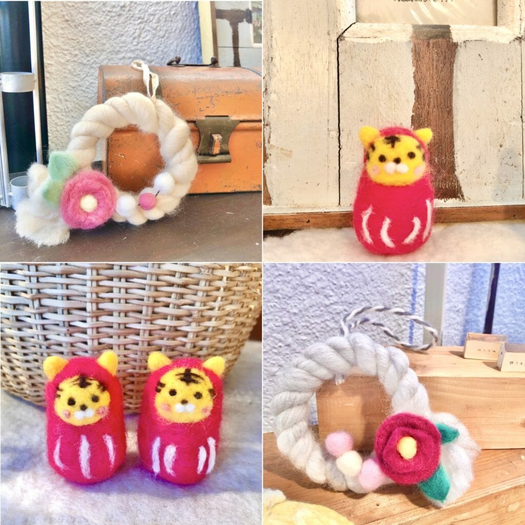 羊毛フェルトの「お正月のしめ縄と干支モチーフ」作品レポート東京・学芸大学駅の羊毛フェルト教室&Shop TeyneyFelt。
