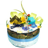 袴風スタイのおむつケーキ 青 お名前プレート付 端午の節句 男の子 男の子出産祝い端午の節句 オムツケーキ 出産祝い、初節句 に。和紙折り兜とちりめん細工の鯉のぼりを飾った和テイストおむつケーキ 1段-ア・ランフィニ 芦屋 フルーラル - プレゼント。