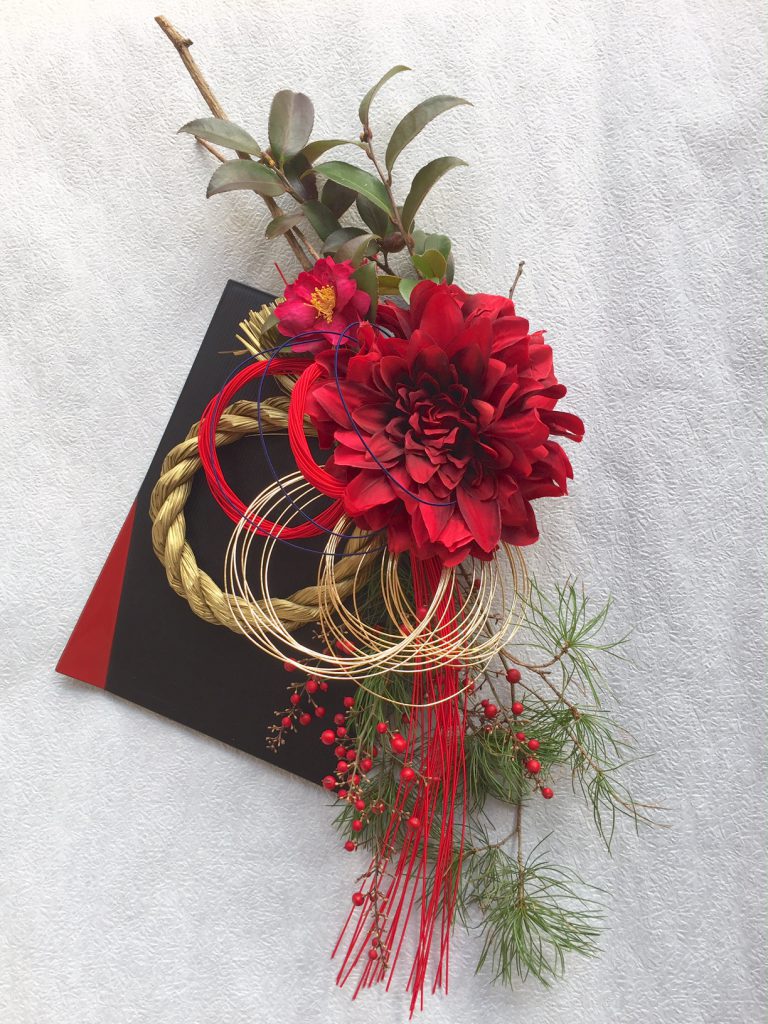 フラワーアレンジメント 水引 使い方色々。お正月アレンジに花と使う水引の使い方 フラワーアレンジメント教室 横浜。
