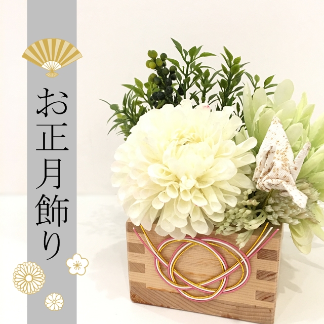 お正月の門松アレンジも販売はじめました。 八角升の木製の器に赤の水引がアクセント。 梅結びの水引は「運命向上」という意味があり、縁起の良いものとされています。玄関や居間などいろいろな場所に飾っていただけます。門松お正月飾り新年お正月テーブル。