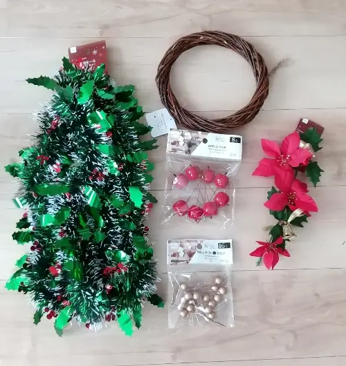 100均アレンジ DAISOやSeriaの材料でクリスマスリース。