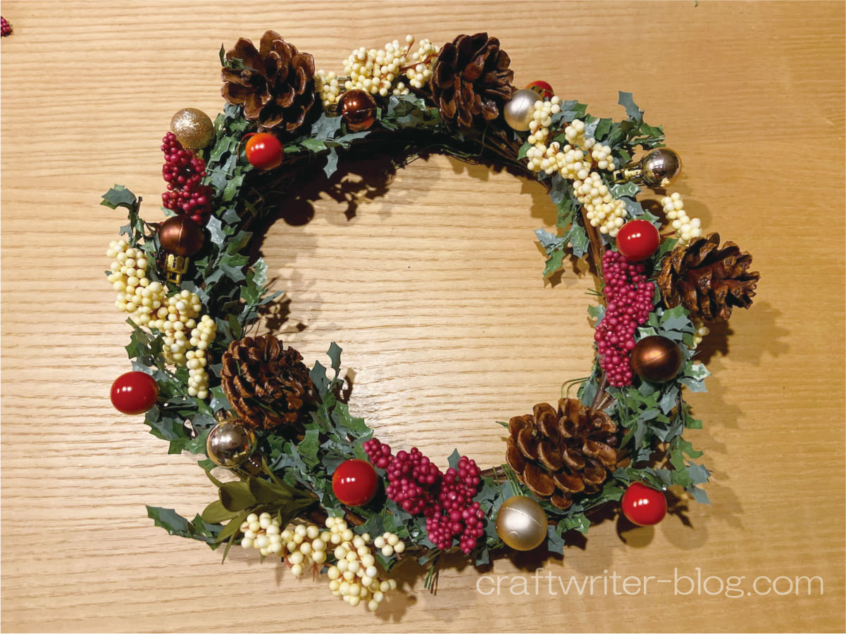 800円で完成!100均「ダイソー」で作るクリスマスリース - ハンドメイドノート。
