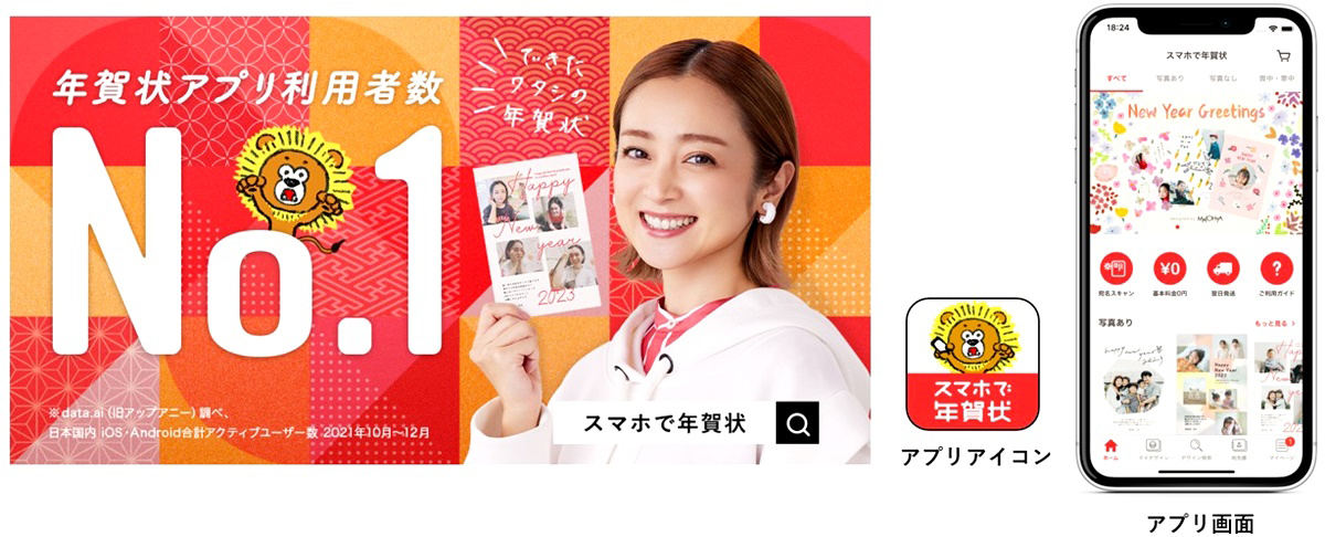 年賀状アプリ 利用者数 No.1※1 「スマホで年賀状2023」11月1日 火 注文受付開始今年はユーザーから人気の高かったデザインが“復刻デザイン”として登場!株式会社CONNECTITのプレスリリース。