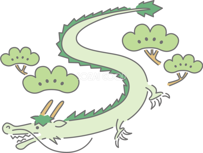 龍と松 かわいい2024 辰年イラスト無料 フリー89466素材Good。