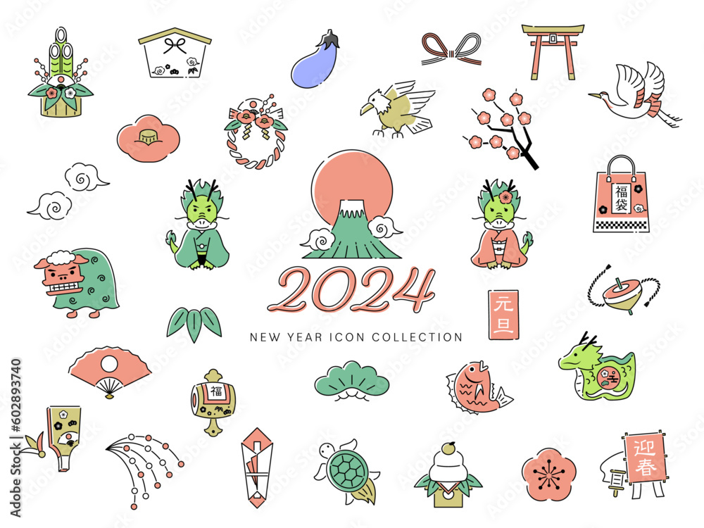 2024年辰年の正月素材セット イラスト素材7370294- フォトライブラリ。