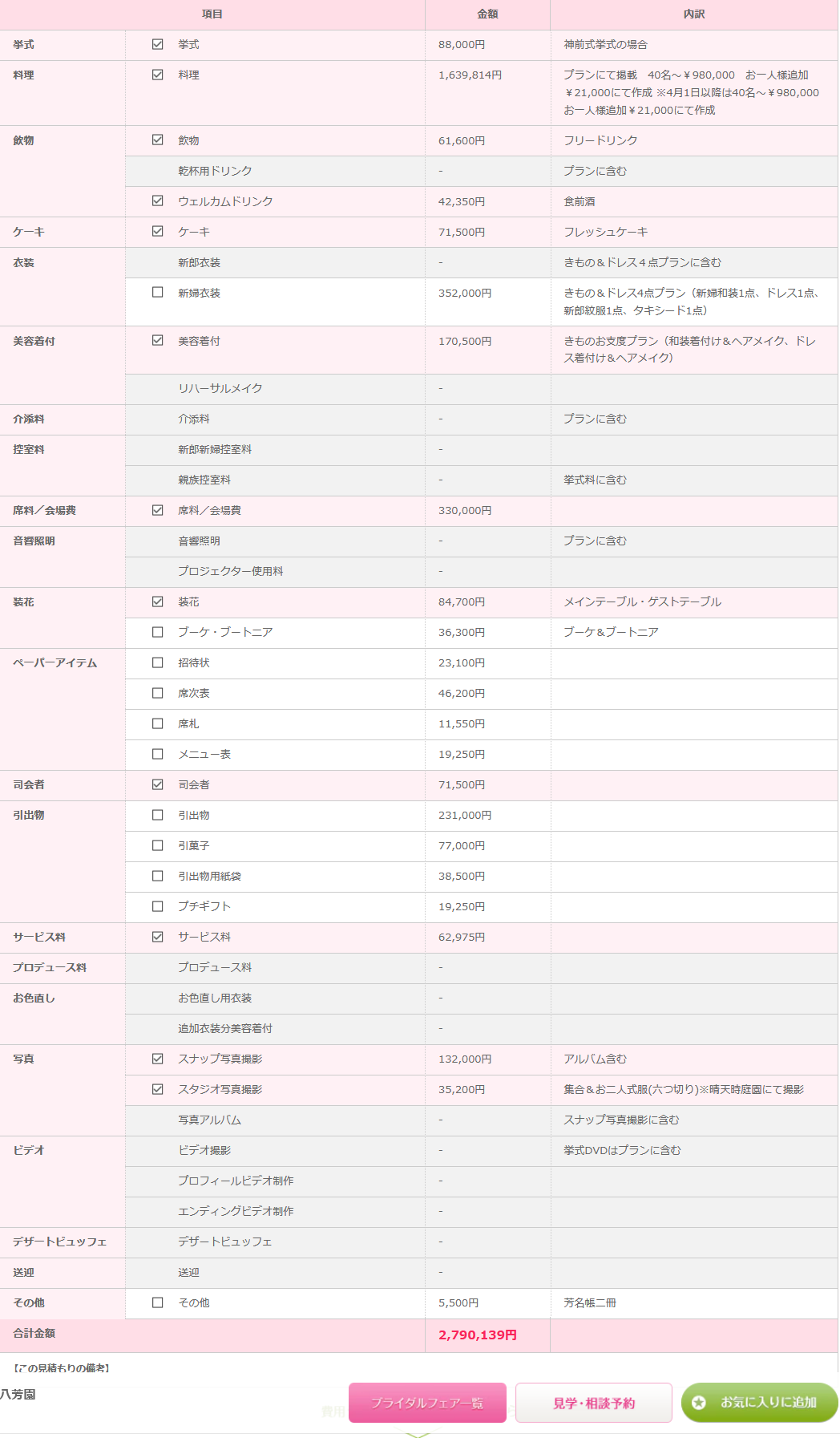 八芳園の費用・料金例・ゼクシィ花嫁割・ウェディングプラン ゼクシィ。