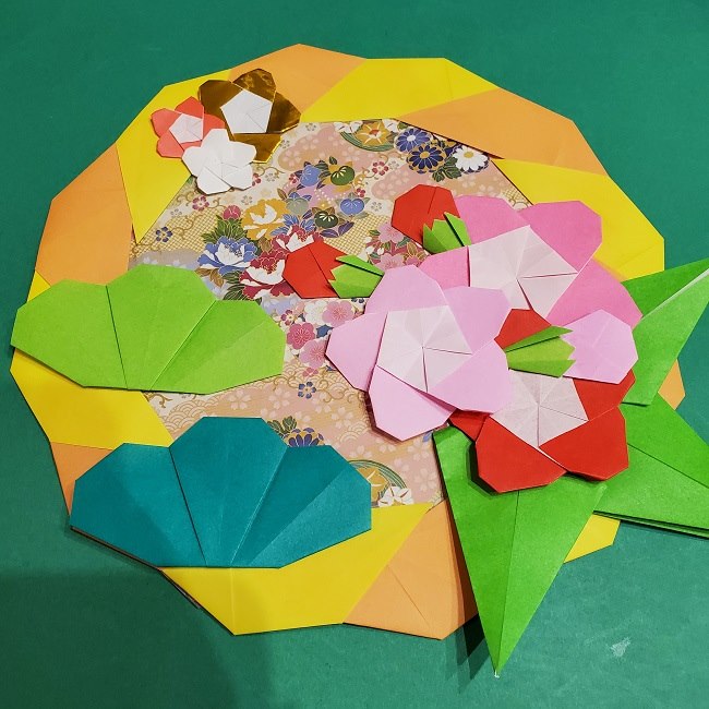 松竹梅の折り紙リースの折り方・作り方☆簡単でお正月にもピッタリな壁面飾り♪│子供と楽しむ折り紙・工作。