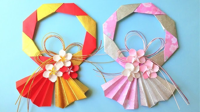 折り紙 お正月飾り しめ縄 梅の花リース 折り方 Origami decoration on New Year's day Plum Flowerwreath tutorial niceno1- YouTube。