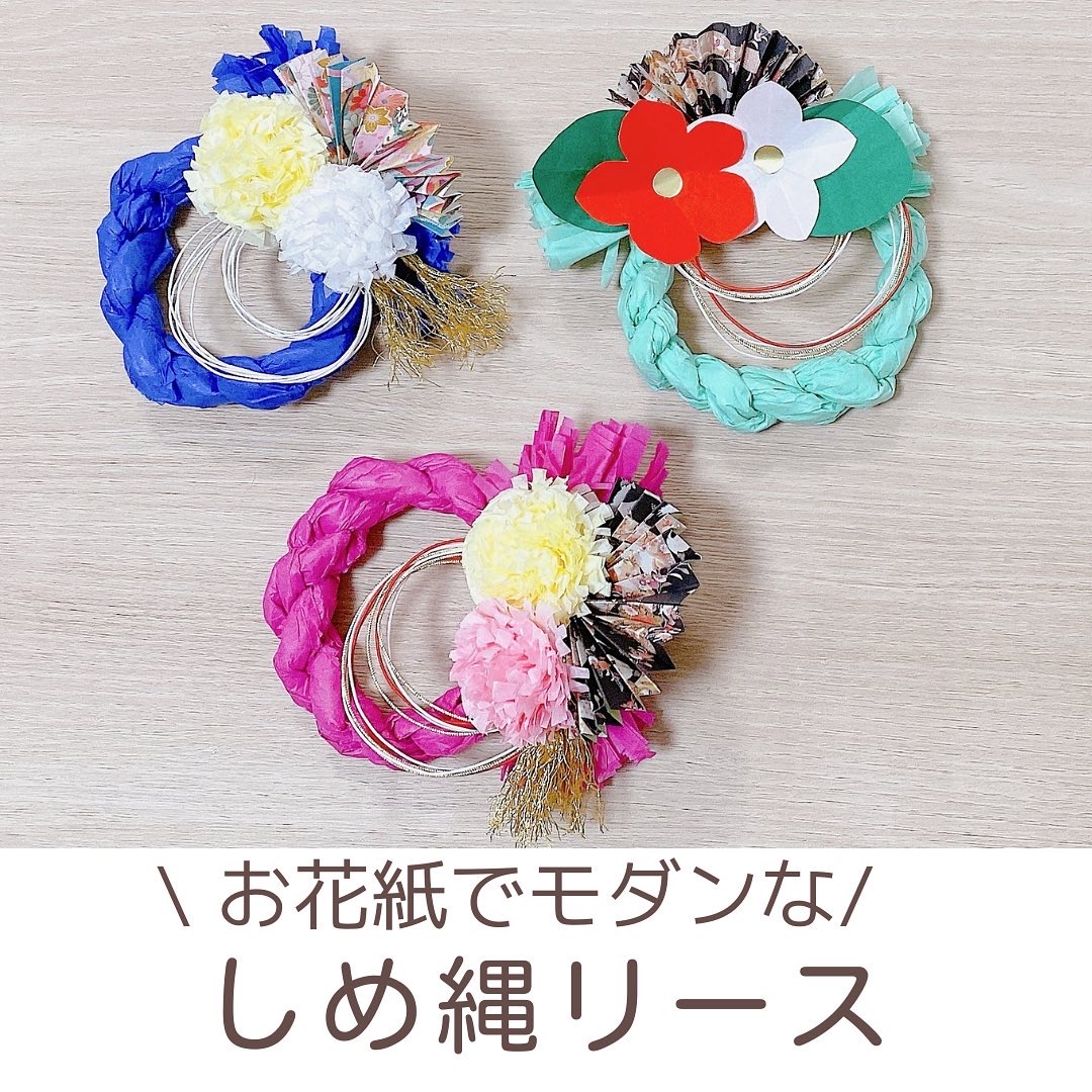 100均工作 お花紙と折り紙で作るしめ縄リースの作り方 親子工作で正月飾り作り - ココエデュ。