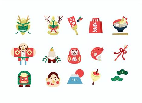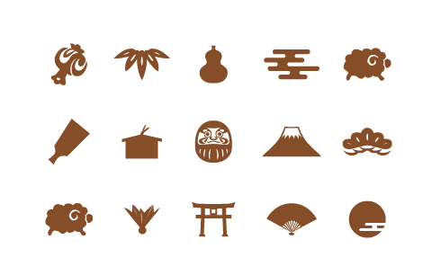 お正月のシンプルなイラスト素材集:イラスト無料。