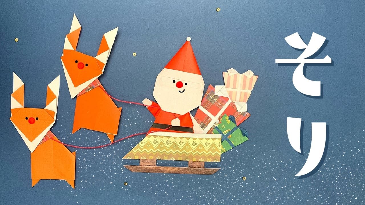 「クリスマス折り紙 その1」サンタクロース&ソリ Santa Claus and sleigh origami の折り方。
