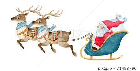 クリスマス トナカイのソリにのったサンタクロース イラスト素材のイラスト素材70365373- PIXTA。