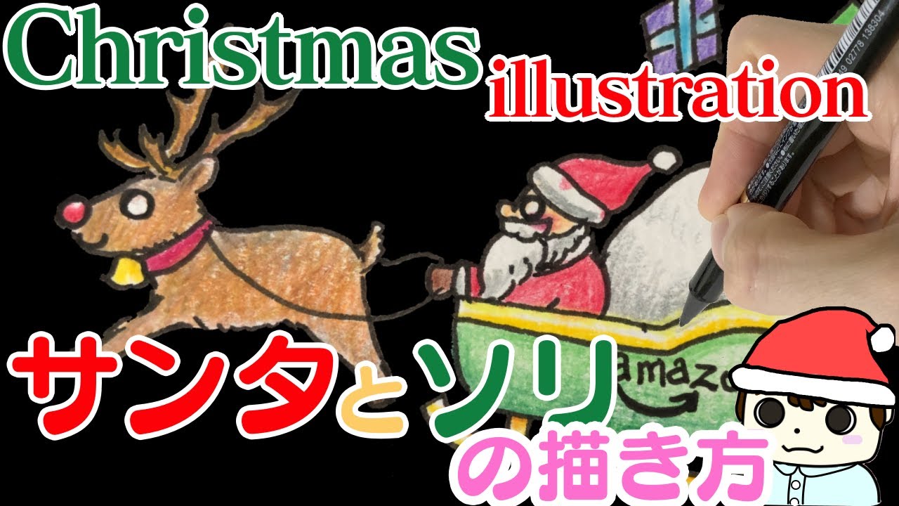ソリに乗ったサンタとトナカイのイラスト Xmasクリスマス トナカイ イラスト, サンタクロース トナカイ。