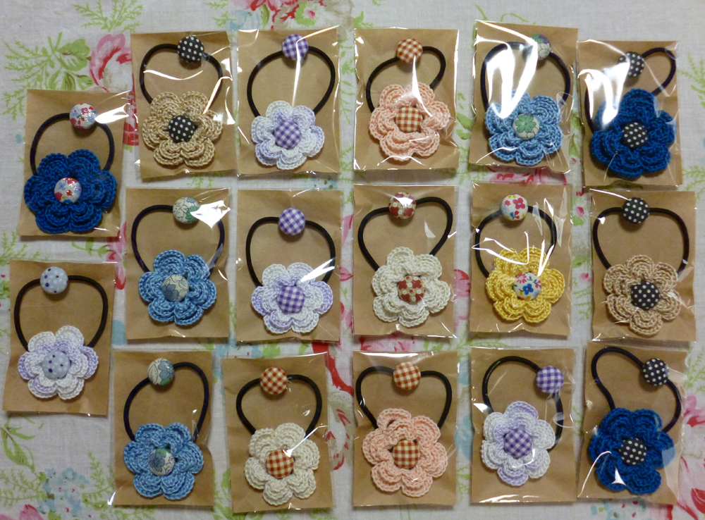 幼稚園バザー用のハンドメイド作品、簡単なヘアゴム&見栄えするラッピングアイデア - 手芸のスギサク。