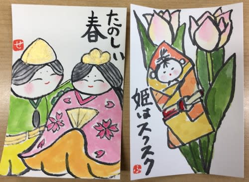 ひなまつり絵手紙 - キムラヤカルチャー教室 作品紹介。