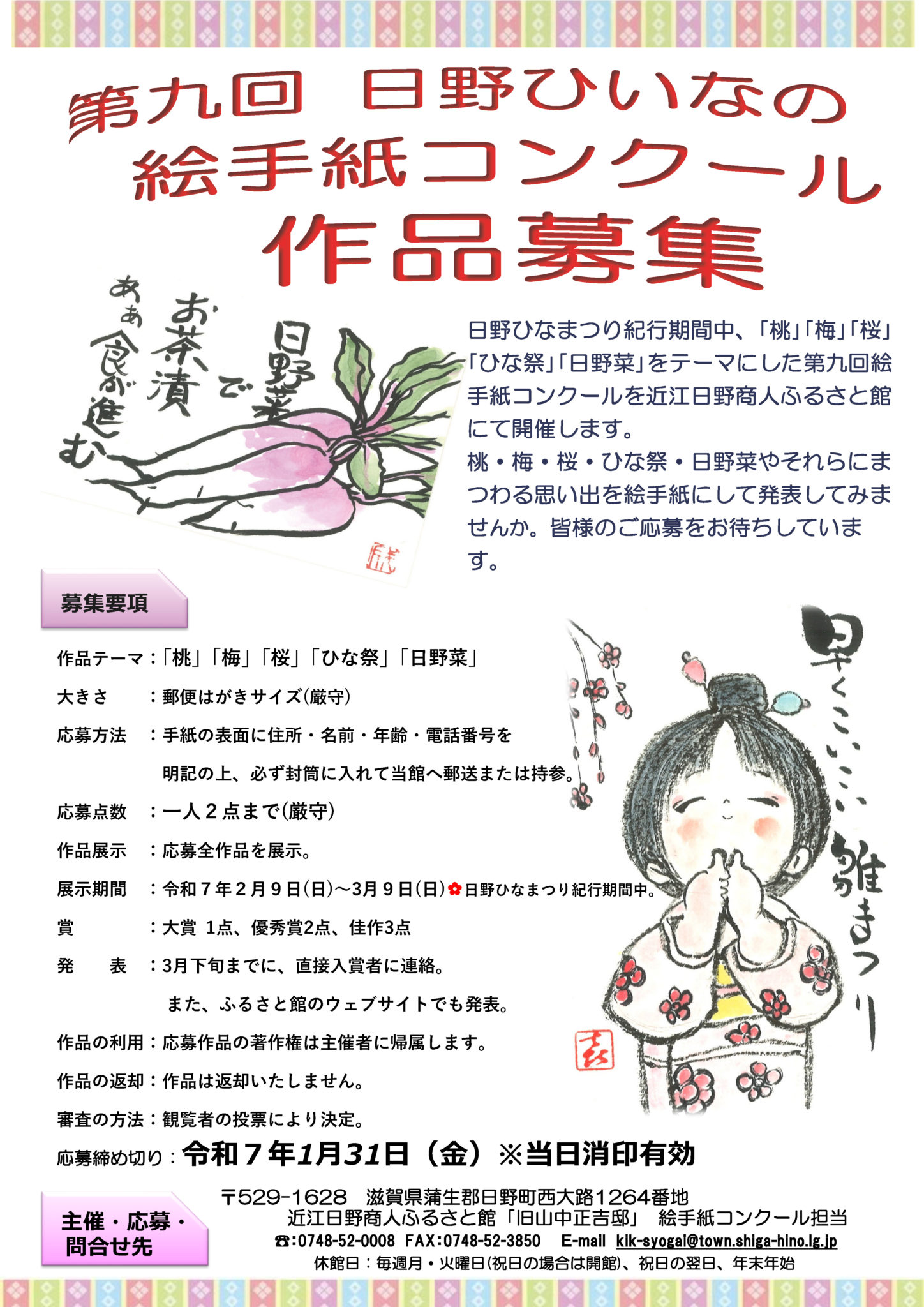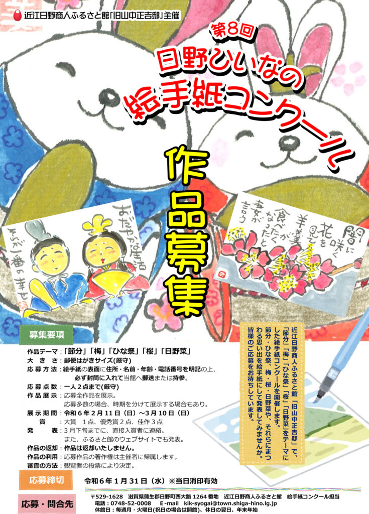 第8回 日野ひいなの絵手紙コンクール作品募集!! – 近江日野商人ふるさと館「旧山中正吉邸」。
