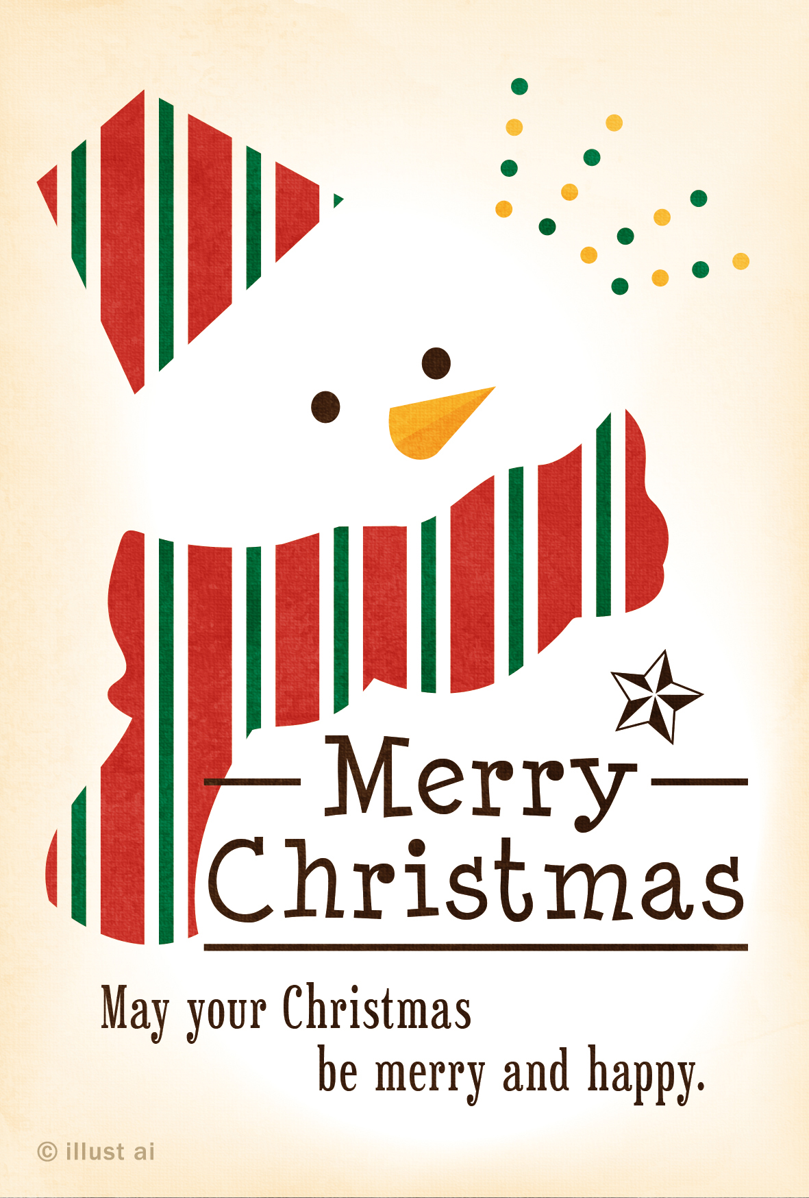 スノーマンと英語メッセージクリスマスカードテンプレート - ポストカード・イラスト素材サイト イラストareiraPostcardtemplate。
