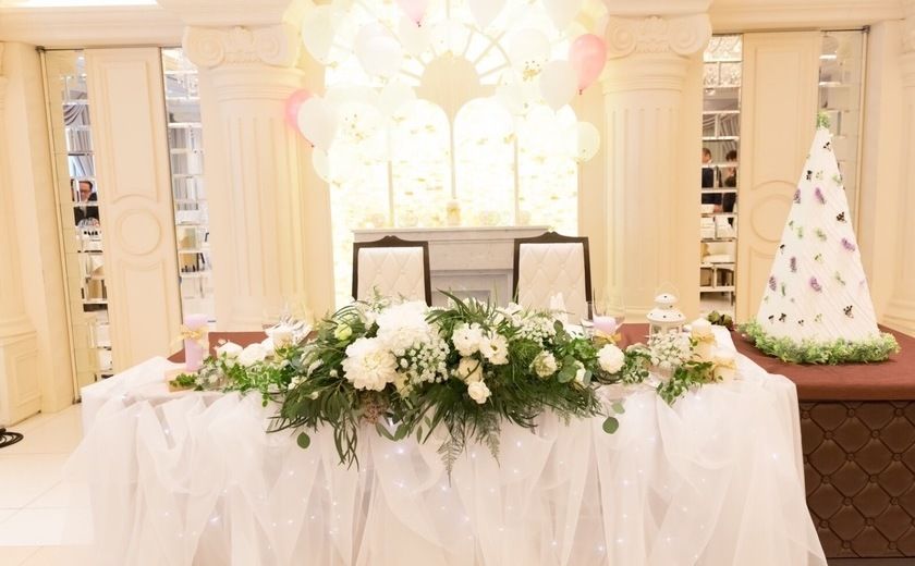 チュール高砂のメインテーブルに「花びら」を付けるアイデアmarry マリー。