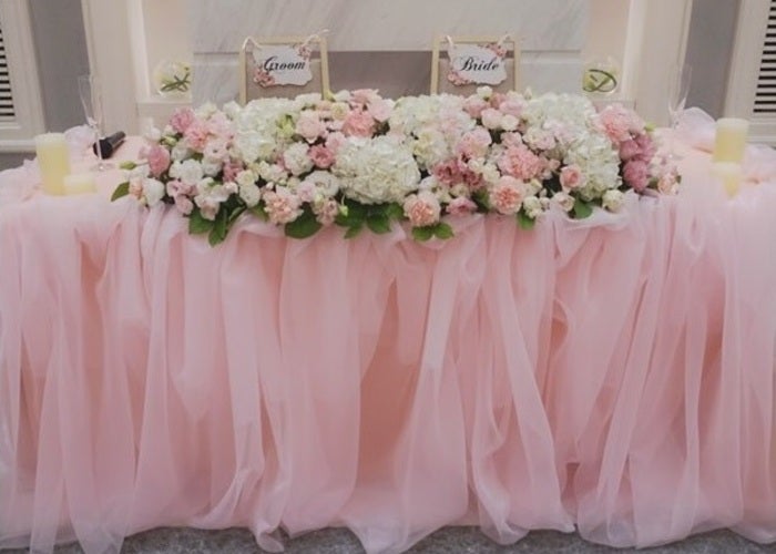 テーブル仮装 高砂チュール 結婚式 誕生日 パーティー 可愛いメインテーブルの代表チュール高砂。