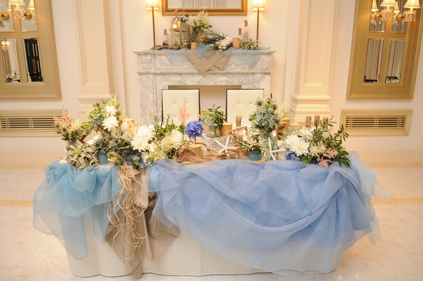 高砂 チュール メインテーブル オーガンジー 結婚式。