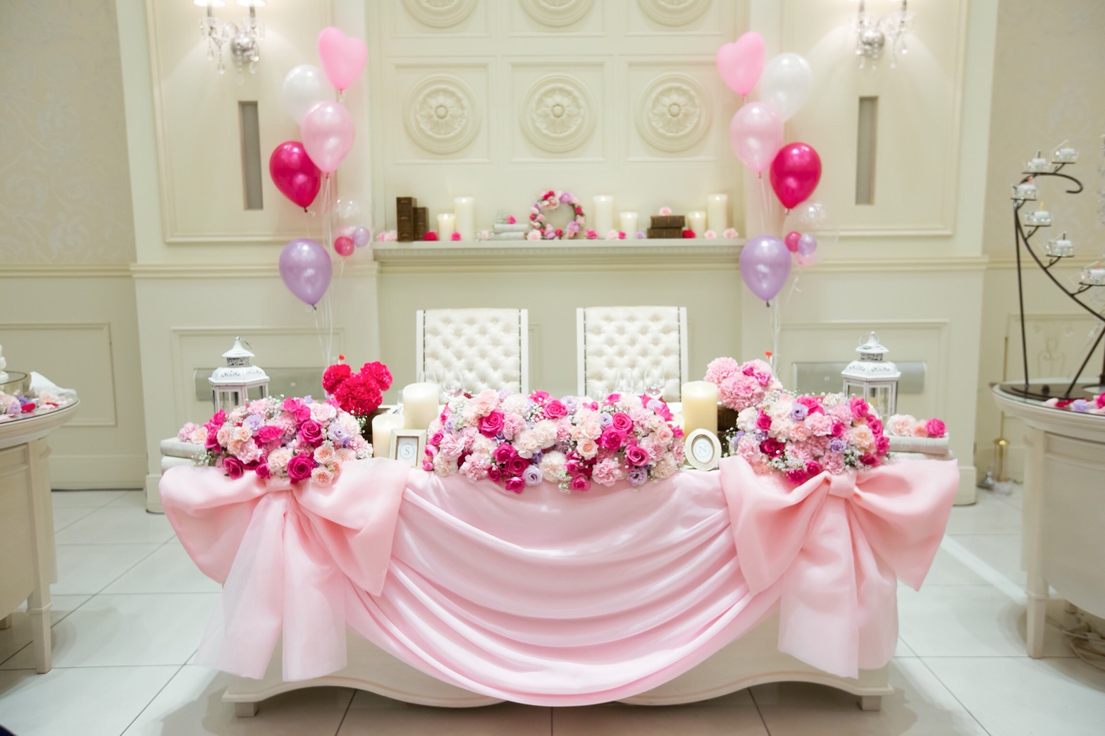 キーカラーは ピンク ♡結婚式のかわいい高砂コーディネート集こまウエMAGAZINE。
