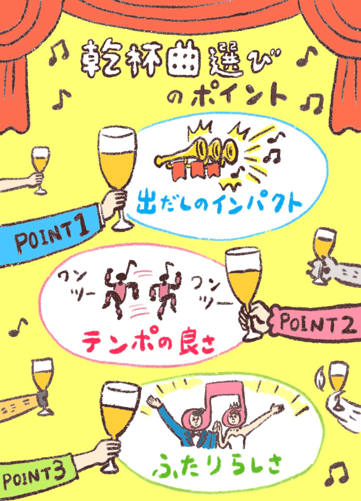 結婚式の“乾杯BGM”どうする? テーマ別の人気曲&選び方ゼクシィ。