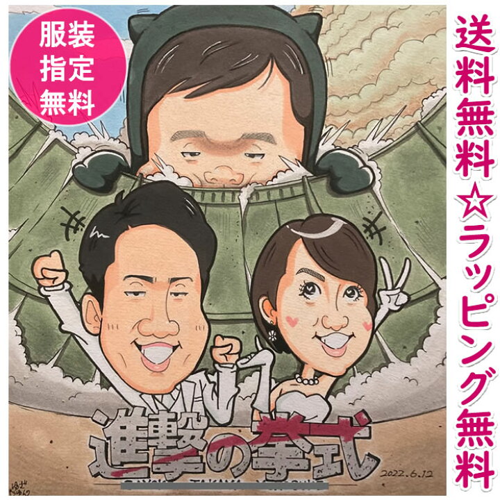 楽天市場 似顔絵 ウェルカムボード 「喜びアニメキャラ」 ウェディング ブライダル 両親 プレゼント 結婚式 贈答品 贈答用 サンクスボード 名入れオーダーメイド オリジナル 記念品A4サイズ 色紙サイズ B4サイズ A3サイズ 額縁選択 ラッピング無料 下書き確認あり。