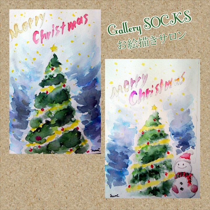 ギャラリーソックスあやめ池 on X: "こんにちは ^o^先日のお絵描きサロン での作品です♪ クリスマスカードを作りました♪水彩絵手紙生徒募集中菖蒲池 https:t.co LeoSe04d8R"X。