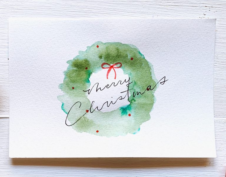 筆ペンで描くクリスマスカードアート書道セラピ。