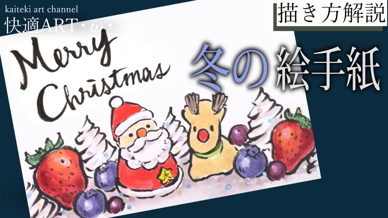 解説 🎅冬の絵手紙『クリスマスケーキの上のサンタとトナカイ』11月、12月初心者向け解説。