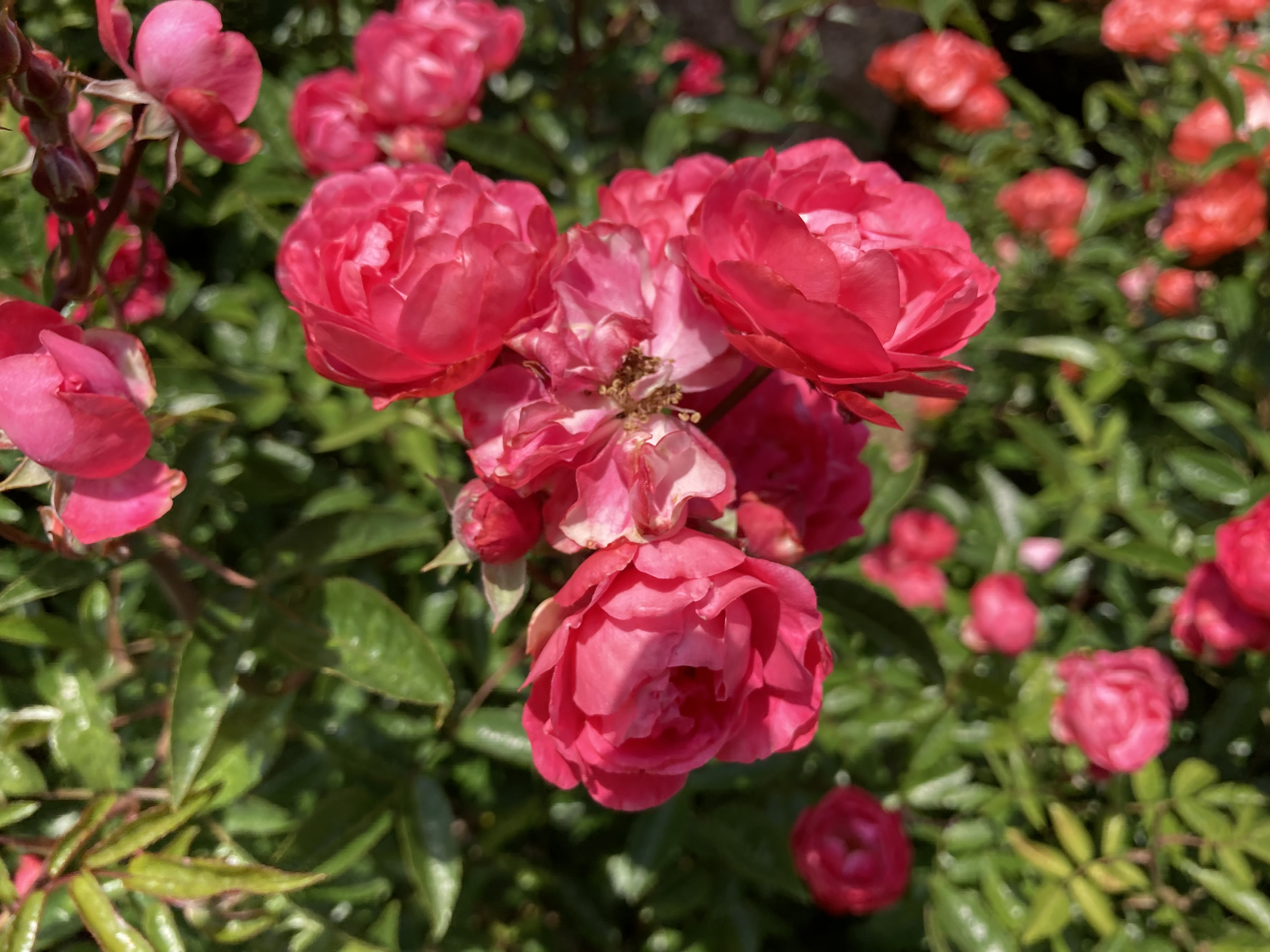 ハッピーマザーズデーHappyMothersday ピンクの濃淡のグラデーションにコロンとしたカップ咲きの花をたわわに咲かせるとっても可愛らしい小輪花 バラRose花ガーデニング薔薇ばらバラの家ガーデンポリアンサPolyanthaオールドローズ。