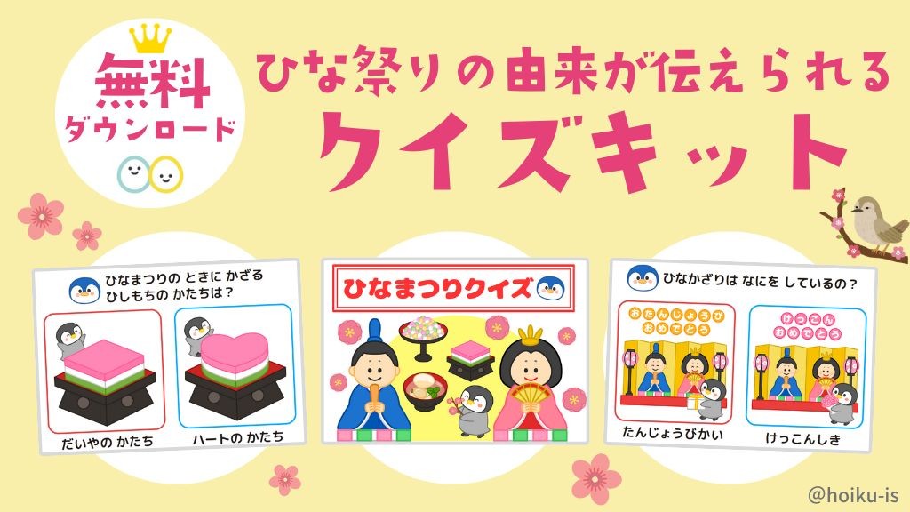 ひな祭りクイズキットプレゼント!子どもたちにひな祭りの由来を伝えよう保育士・幼稚園教諭のための情報メディア ほいくis ほいくいず。