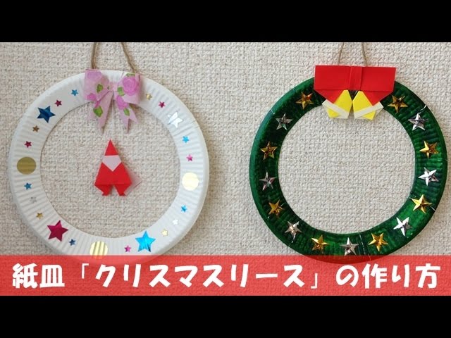 紙皿と毛糸で作るクリスマスリース - YouTube。