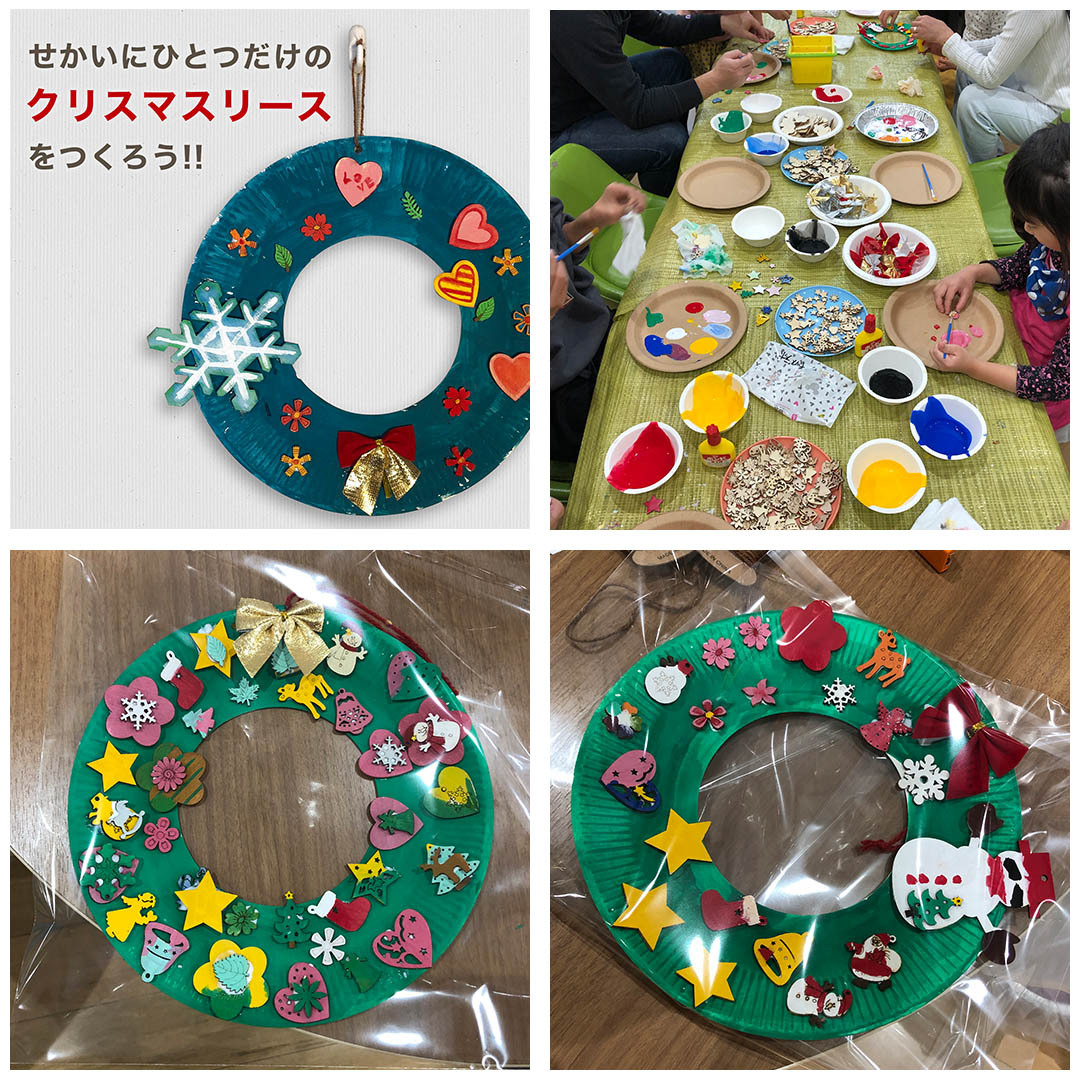 ワークショップ紙皿を使ったオリジナルクリスマスリースワークショップを行いました。