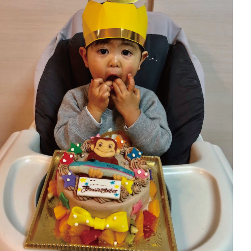 世界に一つだけの記念日ケーキおさるのジョージに兜を飾ってもらって初節句と入園のお祝い♫記念日ケーキご紹介窯出しチーズ・西洋菓子&カフェのシャンティーヒラノ。